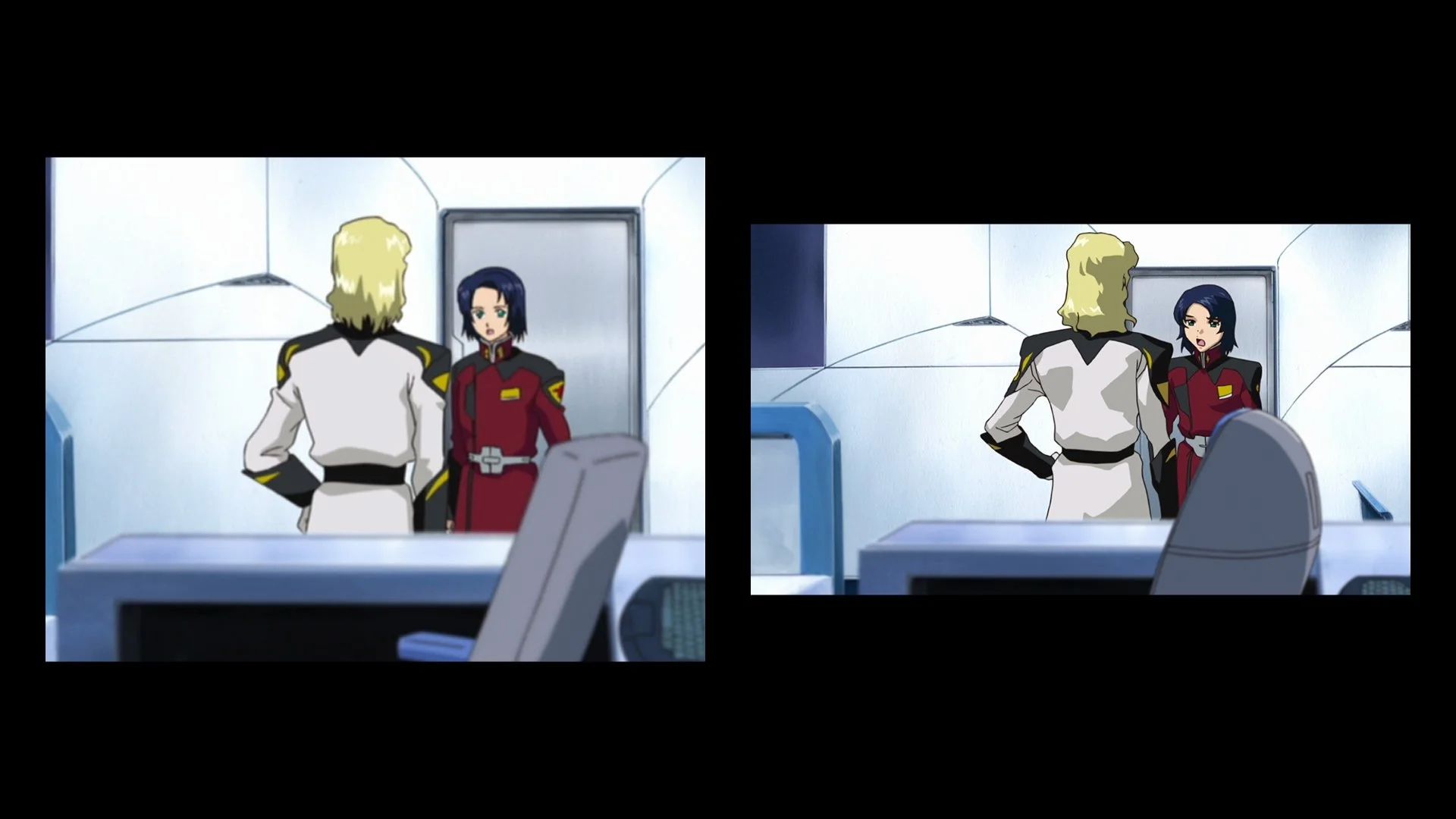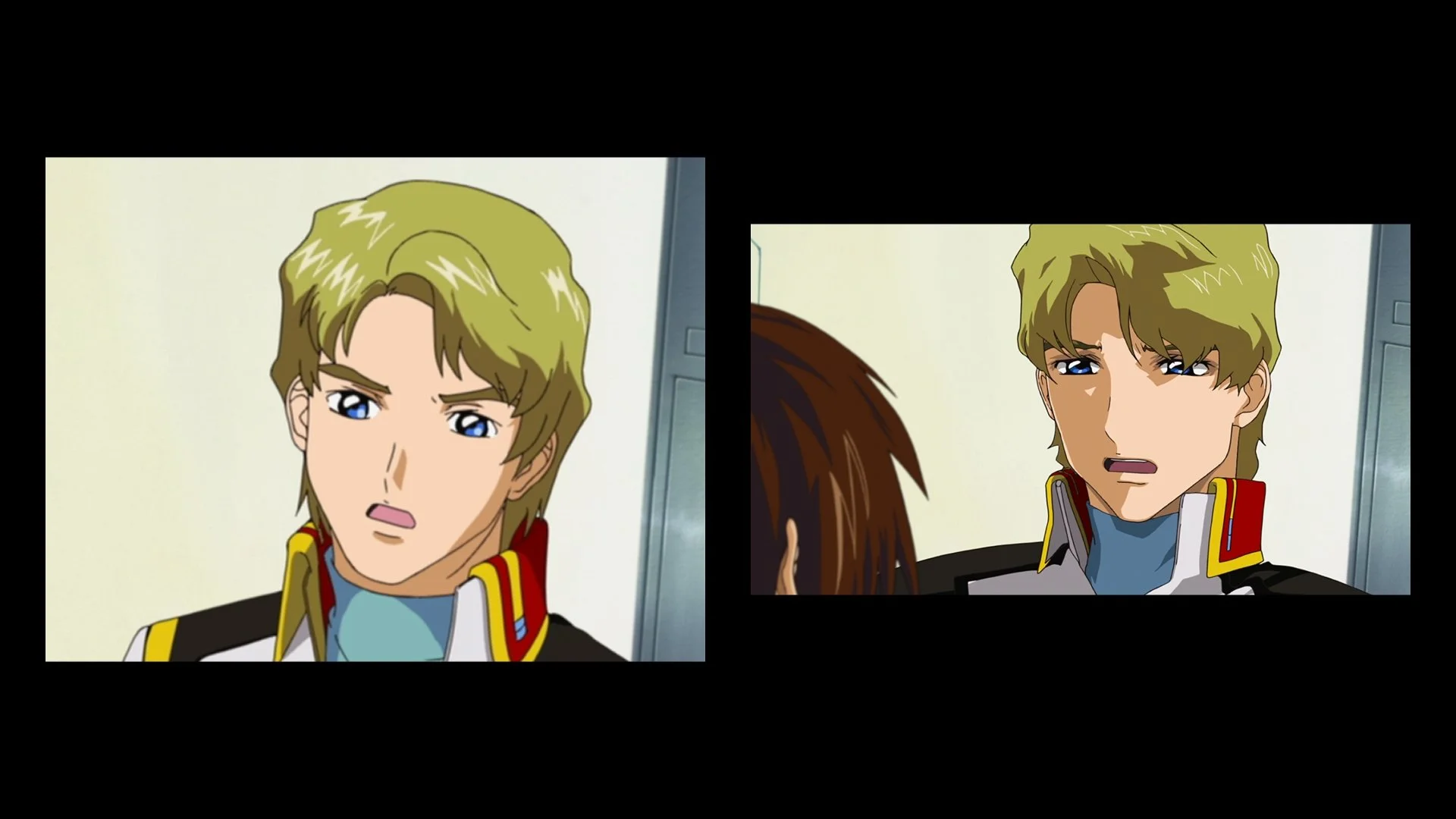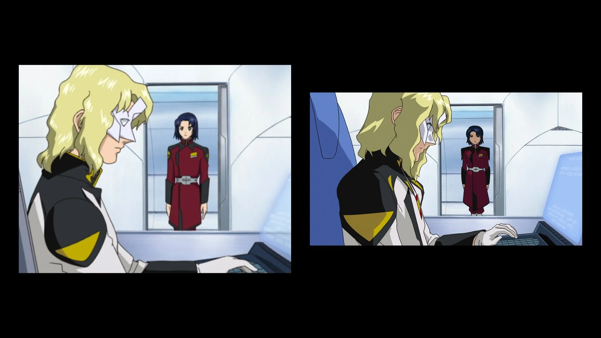 New animation of Rau and Athrun. Note the chair is also a different shape (also the case in the previous cuts).