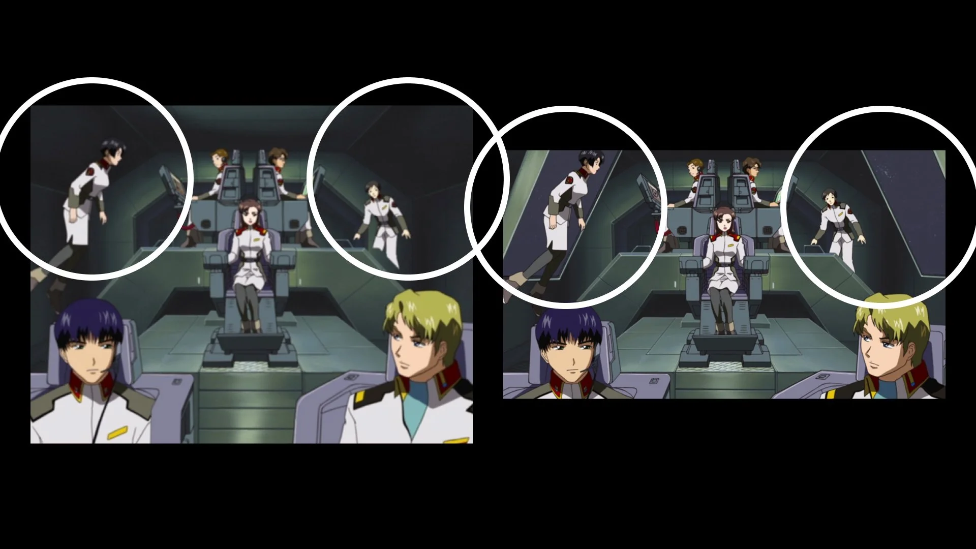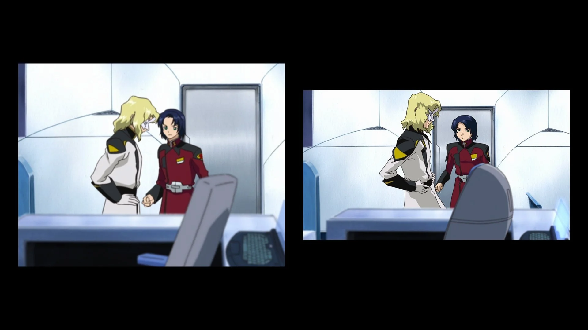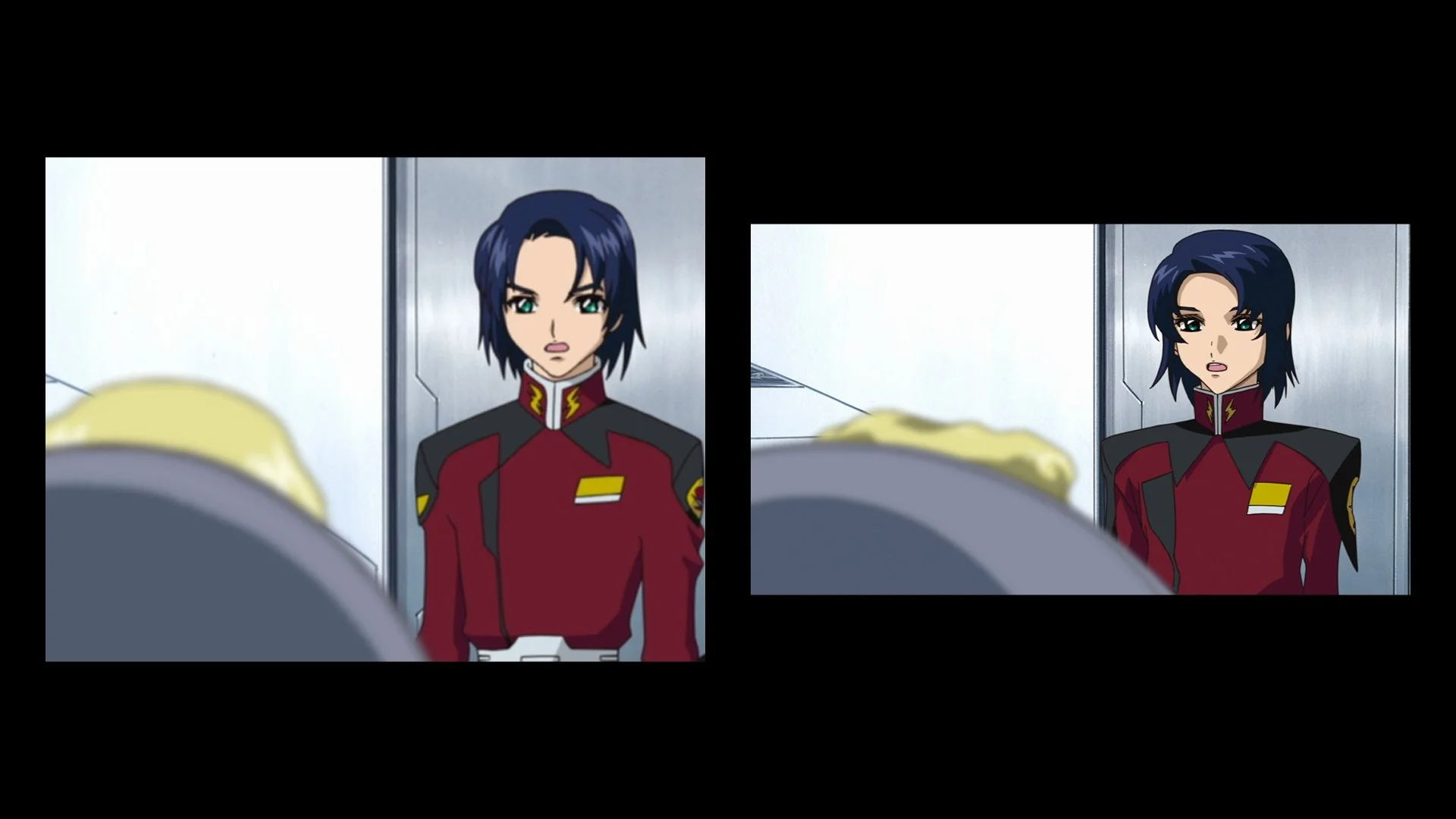 New animation of Rau and Athrun. Note the chair is also a different shape (also the case in the previous cuts).