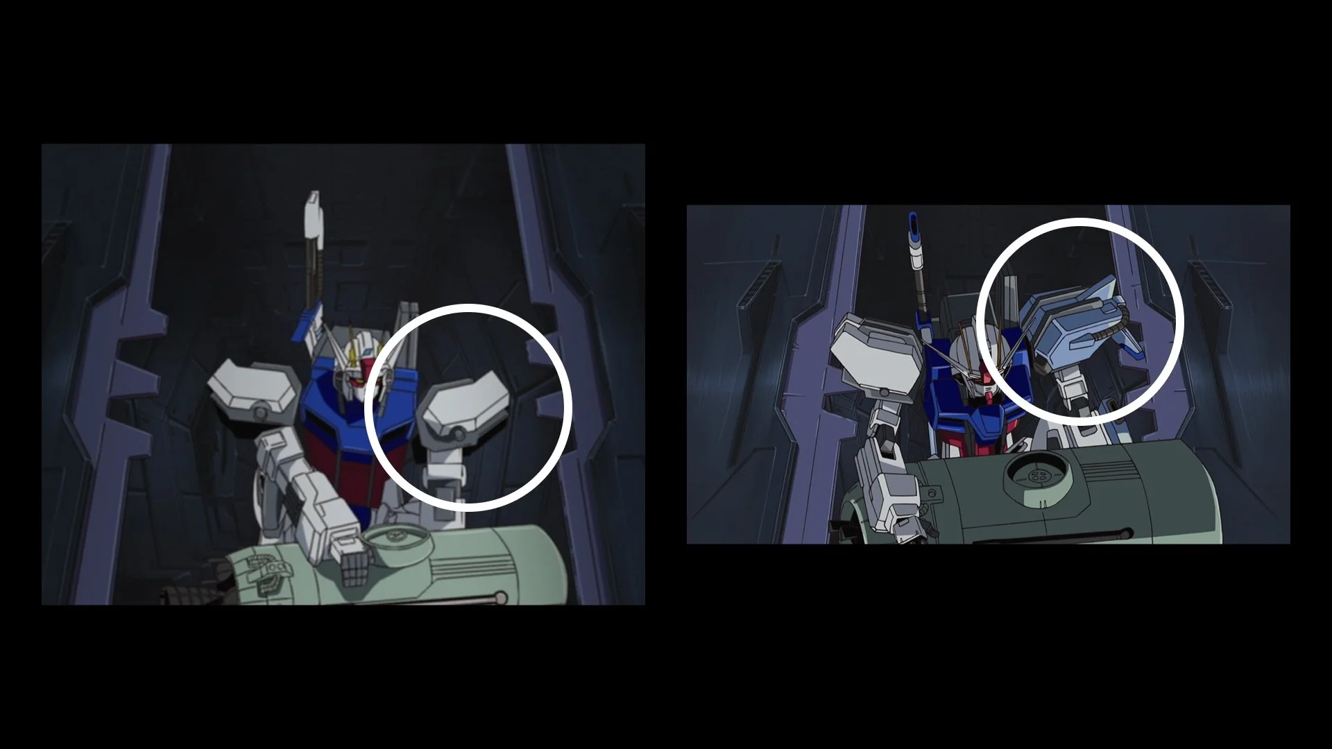 The new animation also ensures that the Sword Strike Gundam’s left shoulder is correct.