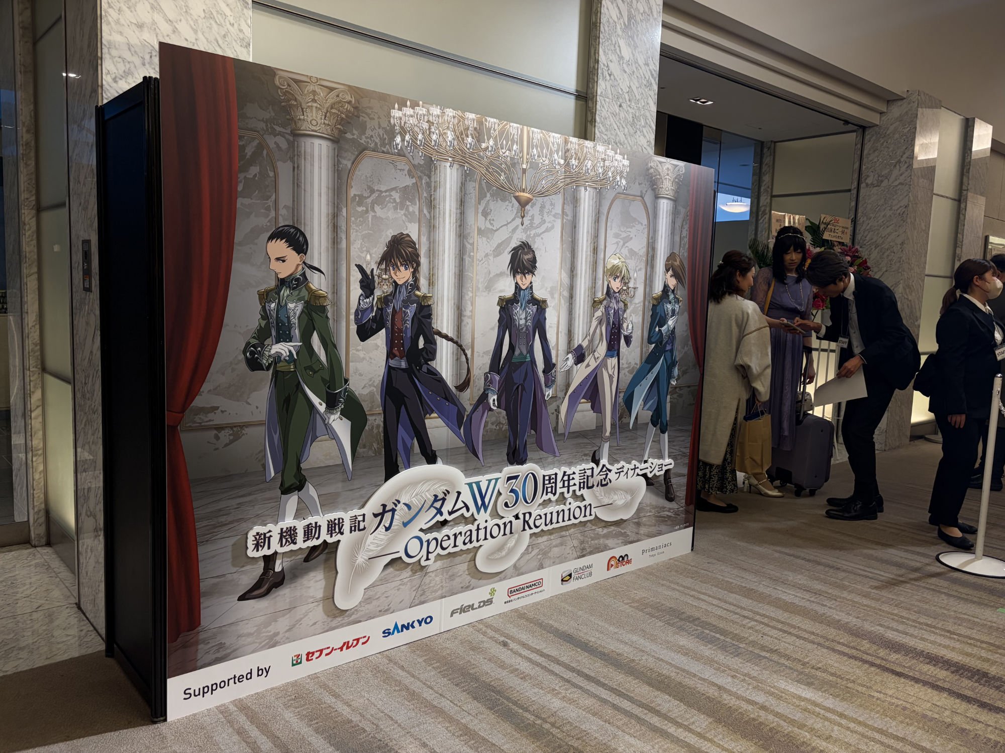 A bright, yet typically cool, Winter afternoon set the scene for Gundam Wing’s 30th Anniversary Dinner Show. After making my way to The Prince Park Tower Hotel Tokyo, and almost fumbling into the wedding chapel area (now that would have resulted in a very different experience!), I finally reached the Basement 2nd floor — for one night, the home of this very special event.